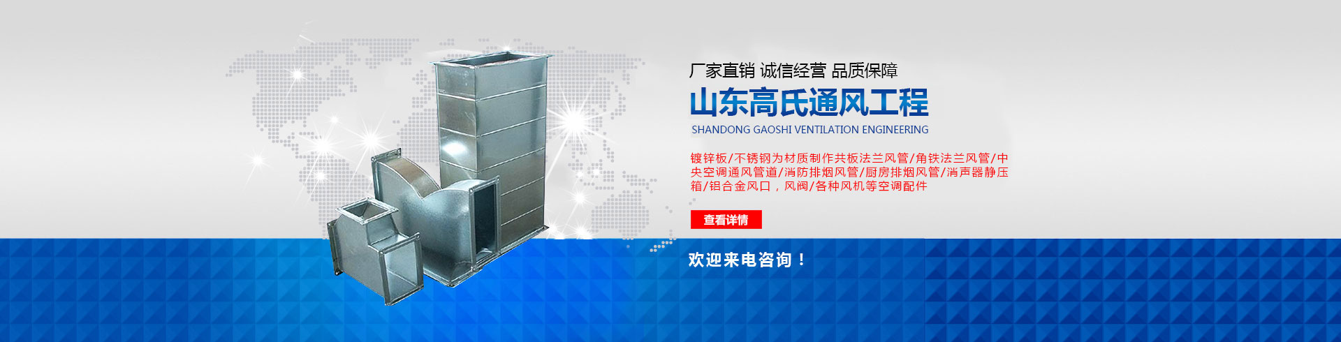 山東高氏通風管道工程有限公司主要經(jīng)營通風管,酒店廚房排煙罩酒、黑白鐵加工已有多年,主要從事通風管道設計、制作、安裝為一體的企業(yè),風雨中我們在濟南的通風管道行業(yè)深受客戶的信賴,公司成立之初即確定一個高起點,公司擁有專用通風管生產(chǎn)線,各種設備齊全。 公司產(chǎn)品主要有,以鍍鋅板、不銹鋼為材質(zhì)制作共板法蘭風管,角鐵法蘭風管,空調(diào)通風管道,消防排煙風管,廚房排煙風管,消聲器,靜壓箱,鋁合金風口,風閥,各種風機,等空調(diào)配件。 公司擁有高素質(zhì)管理人員,業(yè)務素質(zhì)高精、管理能力強,展望未來,任重而道遠,我們愿與各業(yè)同仁一道,相互進步,共同發(fā)展,服務回饋社會,...